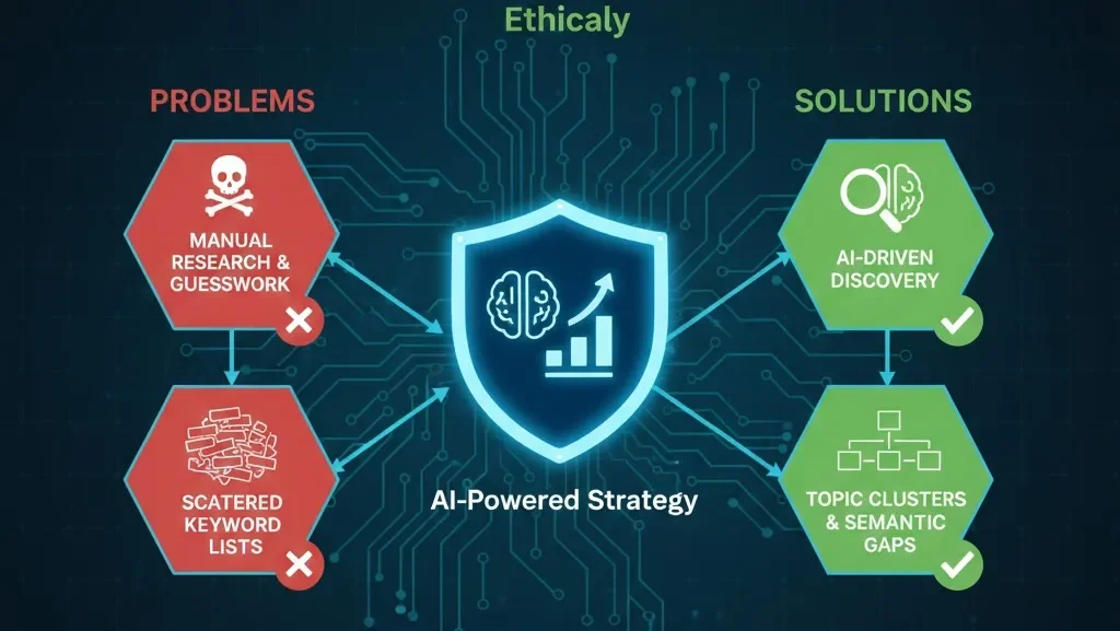Your competitors might be strong in the Awareness stage (e.g., “What is AI SEO?”), but weak in the Decision stage (e.g., “Tool X vs. Tool Y Pricing 2025”). AI helps you identify these high-conversion, low-competition terms.